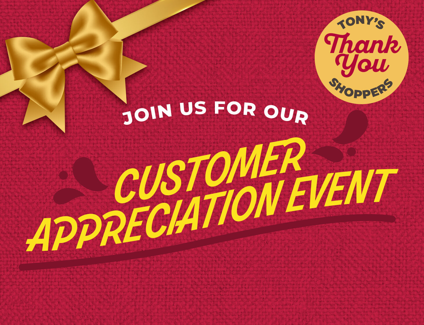 Join us for a very special Customer Appreciation Event happening at all Tony’s locations this October.