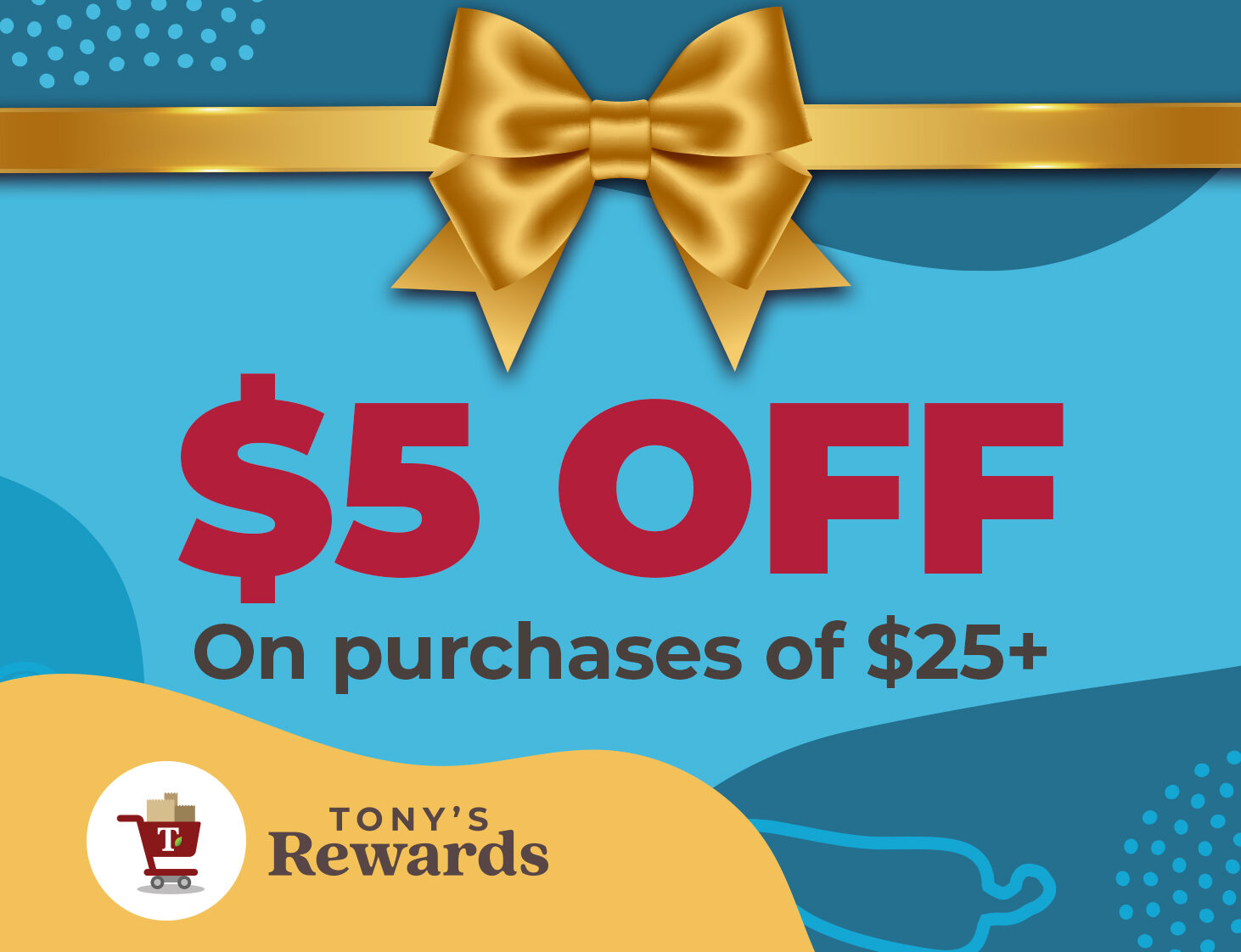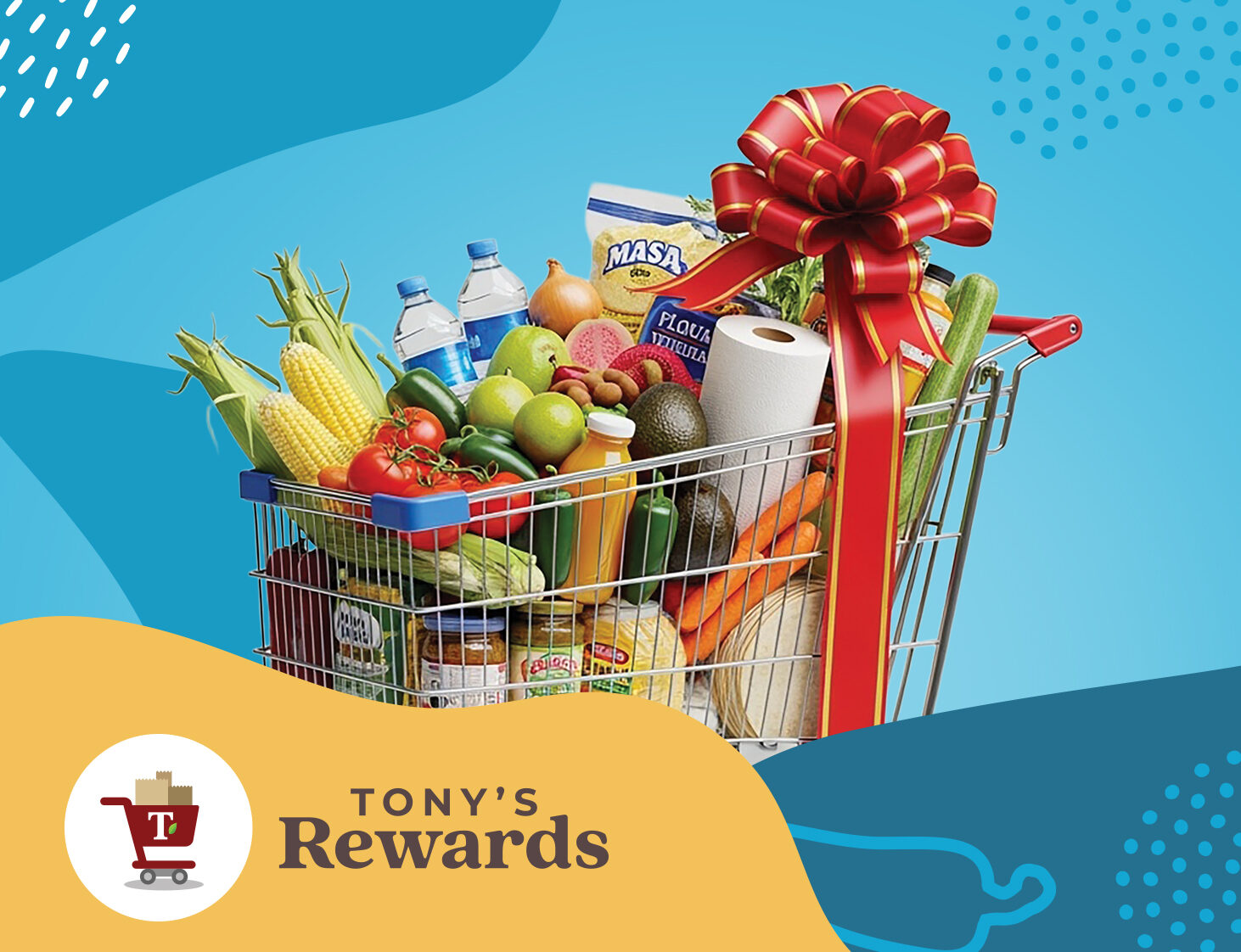 Find our NEW Rewards Sweepstakes on the Tony’s Rewards App! Download the app today and enter EVERY DAY for FREE for a chance to win Groceries for a Year!
