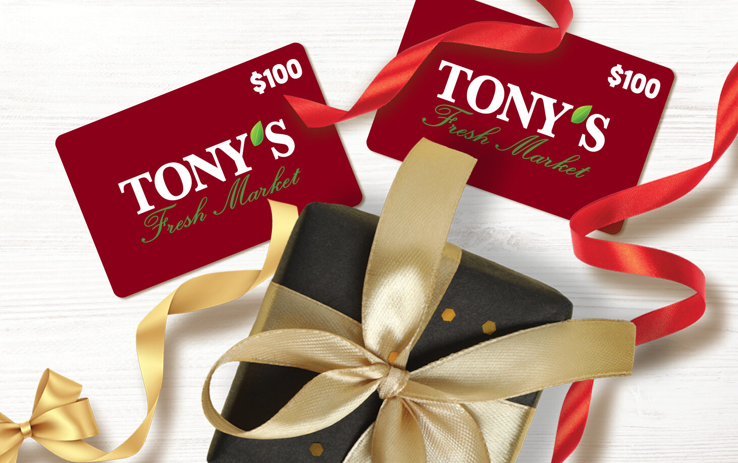 Tony’s Fresh Market offers gift cards for purchase at every Tony’s Fresh Market location. Gift cards can be purchased in store only.